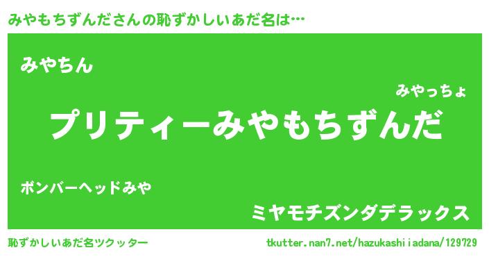 | ヘコむあだ名 | 『みやふぇ~』『みやもちずんだ(苦笑)』 |