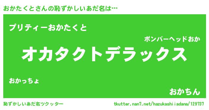 | ヘコむあだ名 | 『おかもー』『おかたくと(爆)』 |