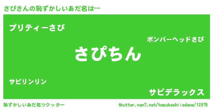 | 男性向けラノベタイトル風あだ名 | 『さぴという概念が存在しない退屈な世界 』 |