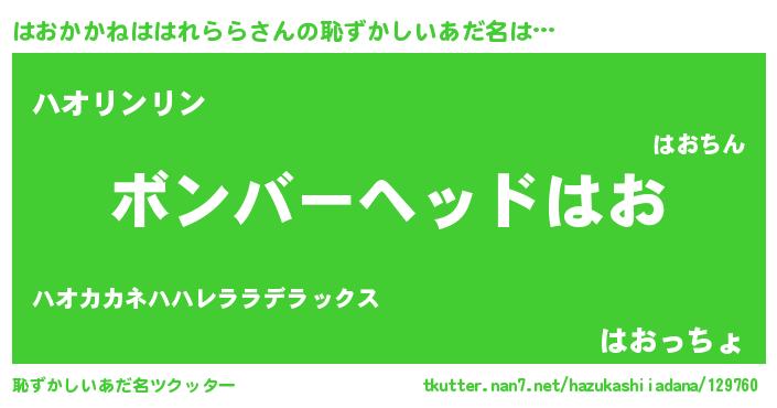 | ヘコむあだ名 | 『はおを』『酢こんぶ』『はおふぇ~』 |