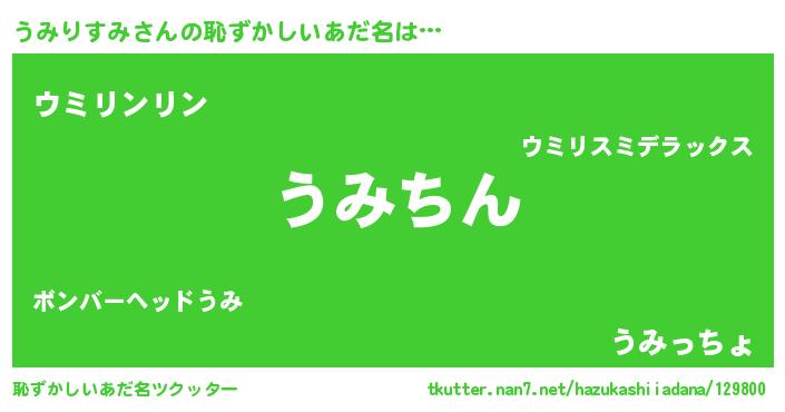 | 意味不明あだ名 | 『永久保存うみりすみ』『自称うみりすみ』 |
