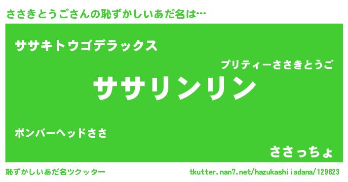 | 肩書あだ名 | 『ささきとうご団長』『ささきとうご総統』 |