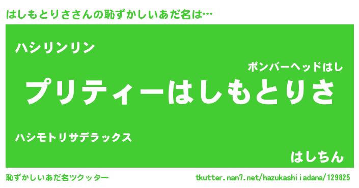 | 胡散臭い通販商品みたいなあだ名 | 『必ず成功するブレスレット…その名も「はしもとりさ」』 |
