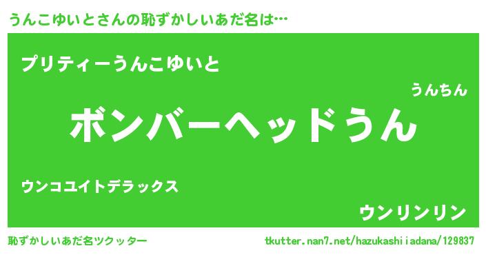 | 意味不明あだ名 | 『住所不定無職うんこゆいと(50歳)』 |