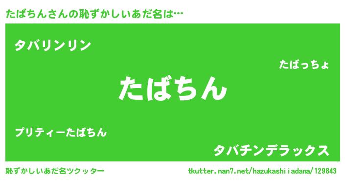 | 意味不明あだ名 | 『永久保存たばちん』『自称たばちん』 |