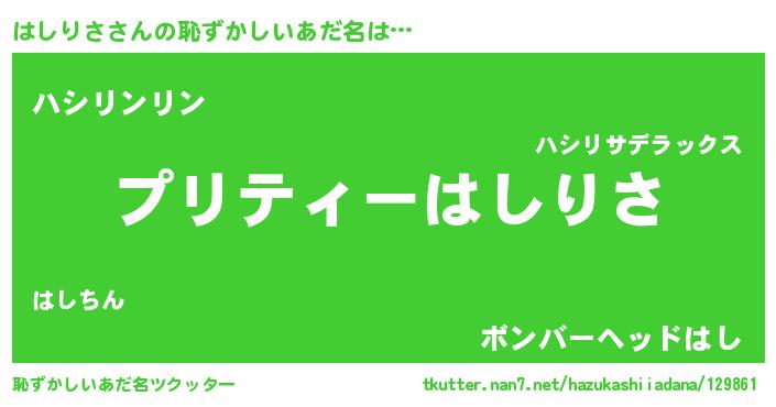 | ヒーロー風カッコイイあだ名 | 『スーパーハシリサ』『銀牙騎士ハシ』 |