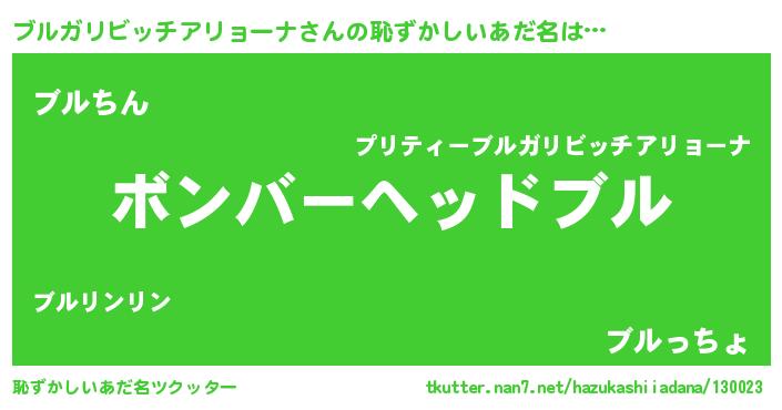 | ヒーロー風カッコイイあだ名 | 『愛の使者ブルガリビッチアリョーナ』 |