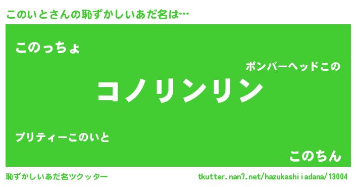 | ヘコむあだ名 | 『このお』『つくし』『このいと(爆)』 |