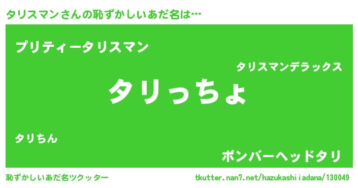 | ポケモン風あだ名 | 『タリスダネ』『タリゴンZ』 |
