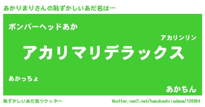| ヘコむあだ名 | 『あかりまり(爆)』『あかを』『豆乳』 |