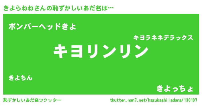 | 意味不明あだ名 | 『とにかく怪しいきよらねね』 |