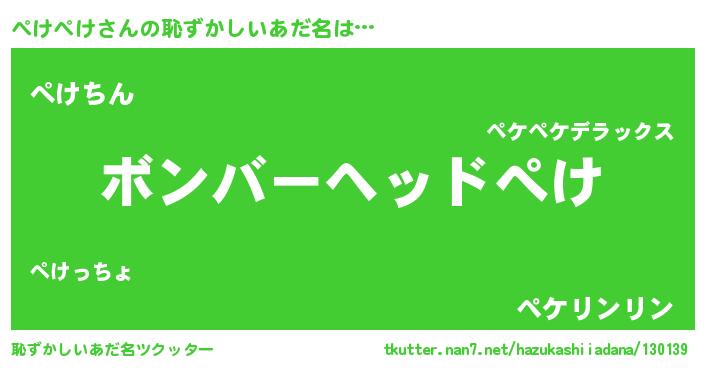 | ヘコむあだ名 | 『ぺけぺけ(苦笑)』『ぺけぷりん』 |