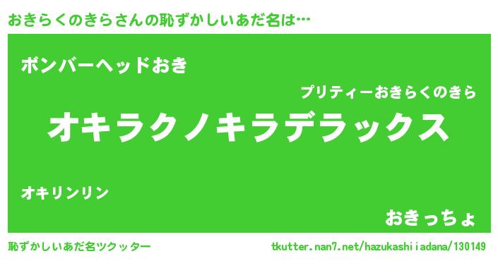 | 意味不明あだ名 | 『自称おきらくのきら』 |