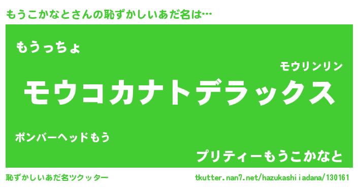 | 意味不明あだ名 | 『自称もうこかなと』 |