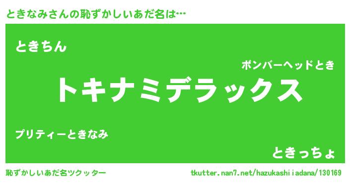 | ヘコむあだ名 | 『ときなみ(苦笑)』『なまこ酢』 |