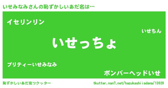 | 男性向けラノベタイトル風あだ名 | 『転生したらいせみなみだった件』 |