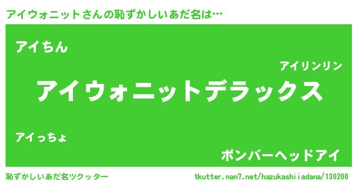 | ヘコむあだ名 | 『アイウォニット(遠い目)』『アイっちょ』 |