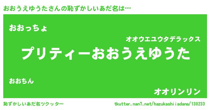 | 意味不明あだ名 | 『ニラ科おおうえゆうた属』 |