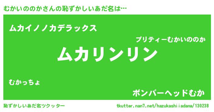 | 男性向けラノベタイトル風あだ名 | 『むかいののかの嫁は女の子じゃないと思った?』 |