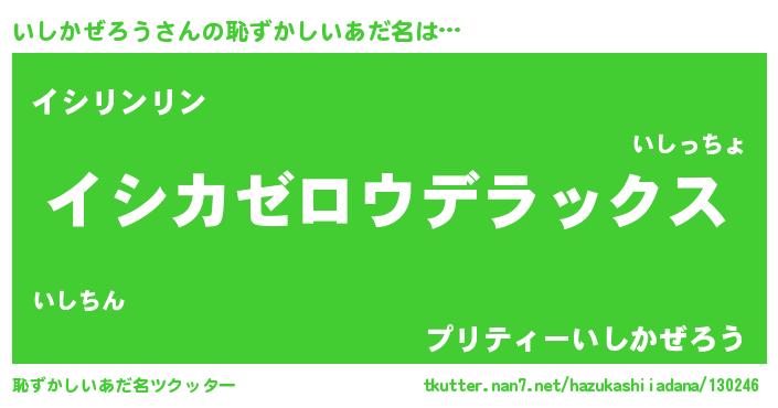 | 男性向けラノベタイトル風あだ名 | 『はたらくいしかぜろうさま!』 |