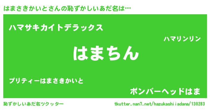 | ヘコむあだ名 | 『はまさきかいと(笑)』『はまぷりん』 |
