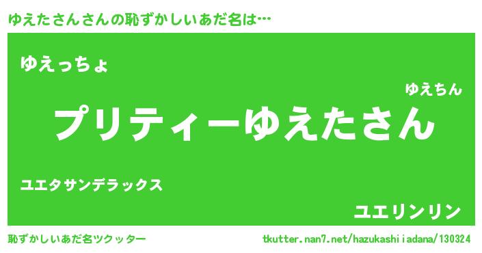 | ヒーロー風カッコイイあだ名 | 『スーパーユエタサン』『仮面ユエダー』 |