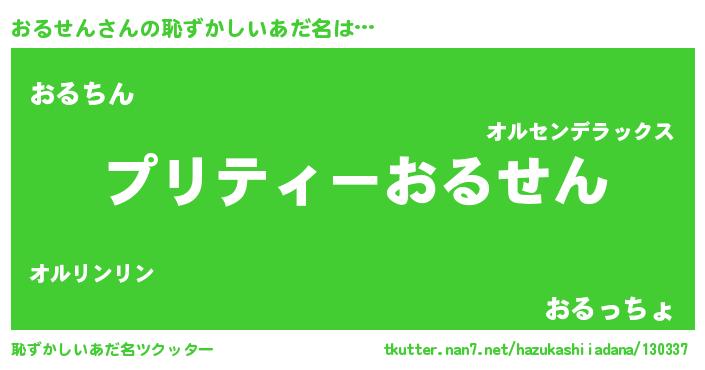 | ヘコむあだ名 | 『おるにゅー』『おるせん(苦笑)』 |