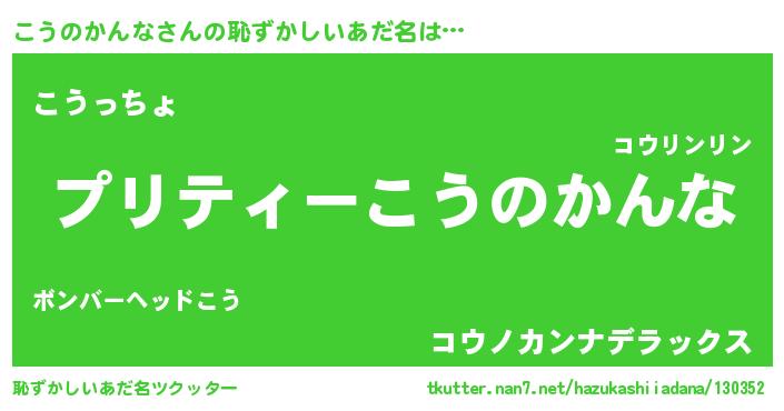 | 男性向けラノベタイトル風あだ名 | 『こうのかんなの憂鬱』 |