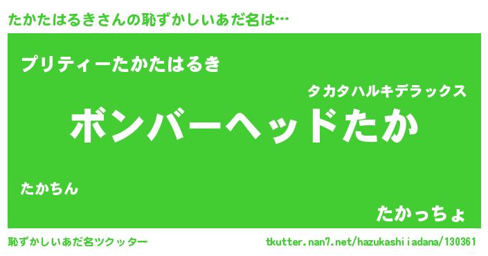 | 意味不明あだ名 | 『眠気覚ましガムたかたはるき味』 |
