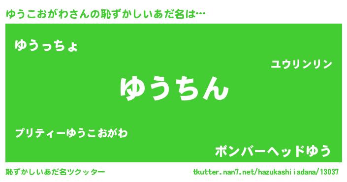 | ヒーロー風カッコイイあだ名 | 『仮面ユウダー』『ネオユウコオガワ』 |
