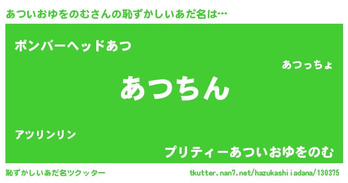 | ヘコむあだ名 | 『あついおゆをのむ(笑)』『あつっふぃ~』 |
