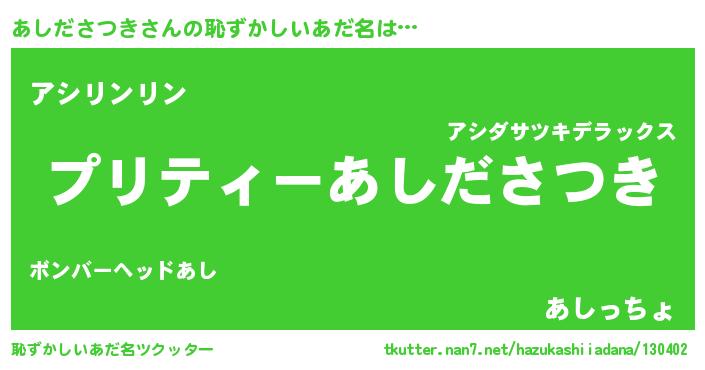 | 欧米人風あだ名 | 『あしださつき・ステッグマイヤー』 |