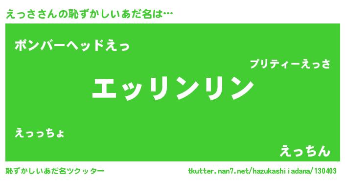 | 意味不明あだ名 | 『住所不定無職えっさ(12歳)』 |