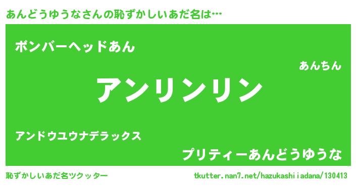 | 欧米人風あだ名 | 『ウサインあんどうゆうな』 |
