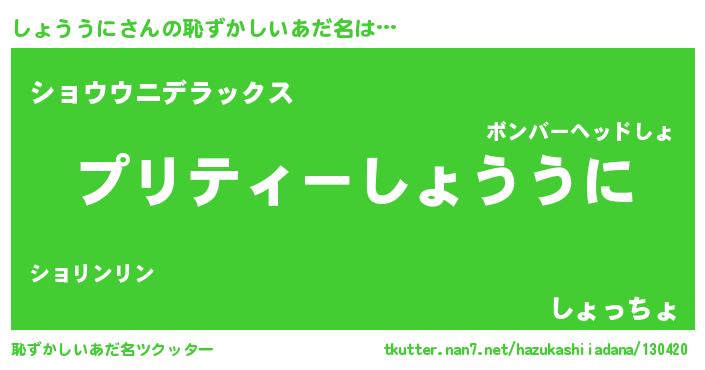 | 意味不明あだ名 | 『ペロリンしょううに』『自称しょううに』 |