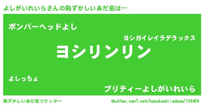 | 欧米人風あだ名 | 『ウサインよしがいれいら』 |