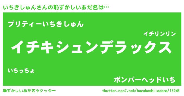 | 男性向けラノベタイトル風あだ名 | 『イチキシュンスレイヤー』 |