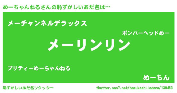 | ヒーロー風カッコイイあだ名 | 『仮面メーダー』『魔戒騎士メー』 |