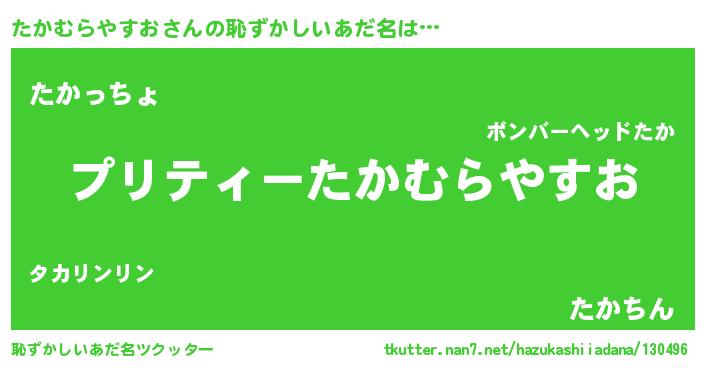 | 女子向けラノベタイトル風あだ名 | 『たかむらやすお姫と円卓の騎士』 |