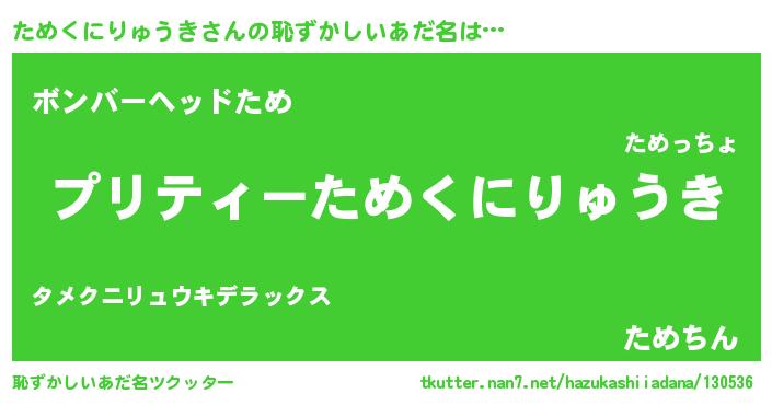 | ヘコむあだ名 | 『ためふぇ~』『ためくにりゅうき(小並感)』 |