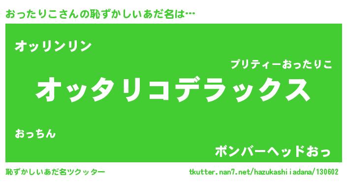 | 意味不明あだ名 | 『自称おったりこ』『ペロリンおったりこ』 |