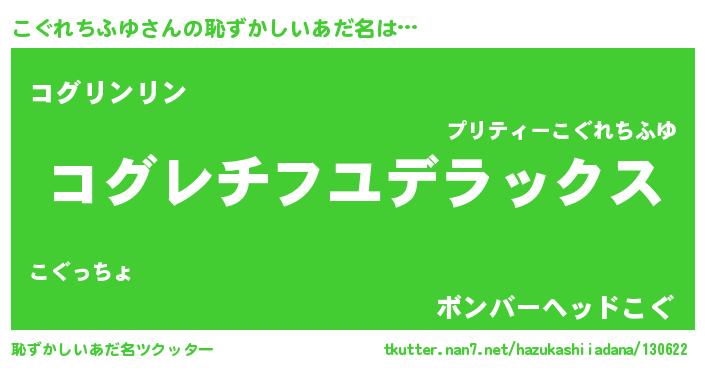 | 男性向けラノベタイトル風あだ名 | 『コグレチフユスレイヤー』 |