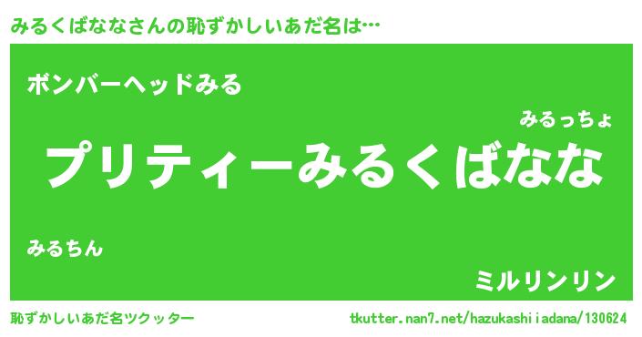 | ヘコむあだ名 | 『みるにー』『みるぷりん』 |