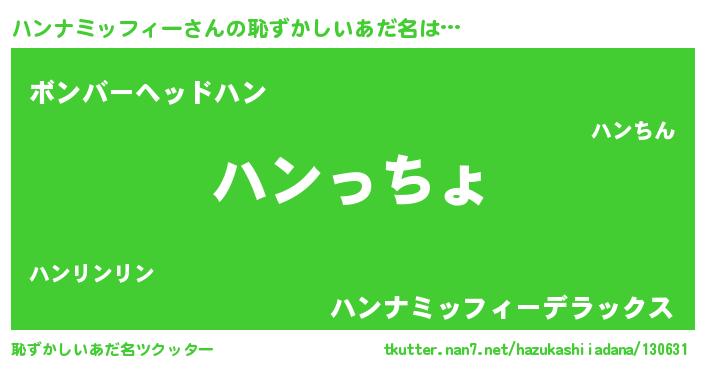 | 欧米人風あだ名 | 『ハンナミッフィークリステル』 |