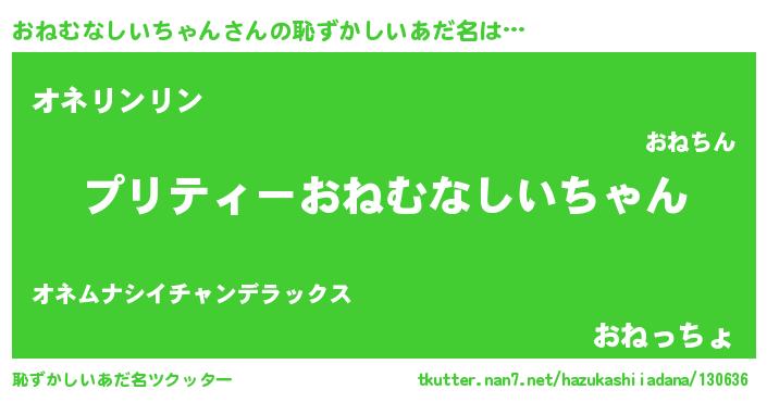 | 意味不明あだ名 | 『ペロリンおねむなしいちゃん』 |