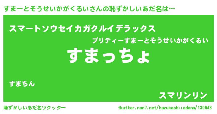 | 可愛いあだ名 | 『すまちー』『すまうちぇる』 |