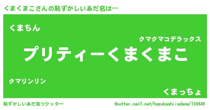 | ヘコむあだ名 | 『くまっふぃ~』『くまくまこ(爆)』 |