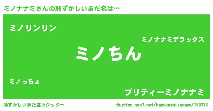 | 意味不明あだ名 | 『永久保存ミノナナミ』 |