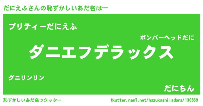 | ヘコむあだ名 | 『だにふぇ~』『だにえふ(笑)』 |