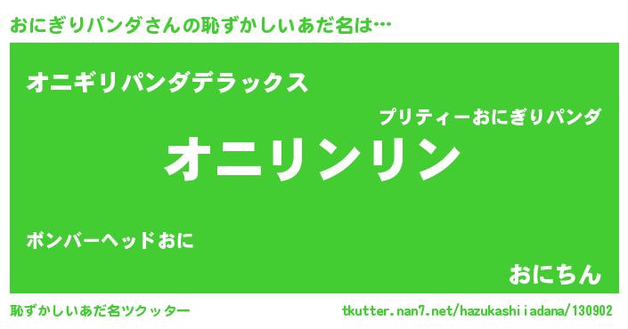 | ヒーロー風カッコイイあだ名 | 『黄金騎士オニ』『ネオオニギリパンダ』 |